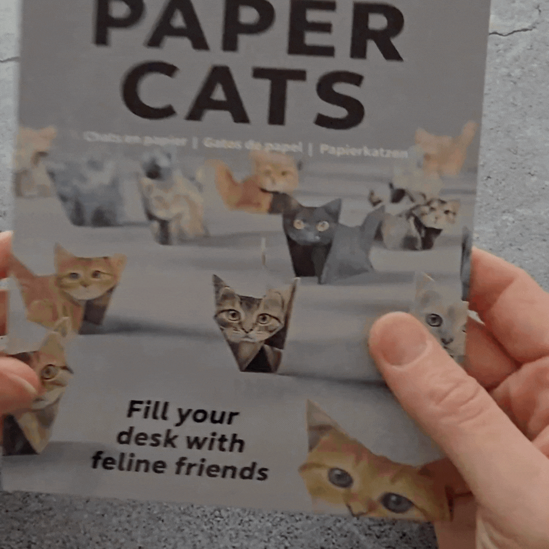 PaperKitties to zestaw 5 ras uroczych kotków do samodzielnego składania. Nie potrzebujesz nożyczek ani kleju – wystarczy kilka zagięć i odrobina czułości. Każdy kociak ma inny charakter: rozbrykany, leniwy, zadziorny – dokładnie tak, jak prawdziwe koty.